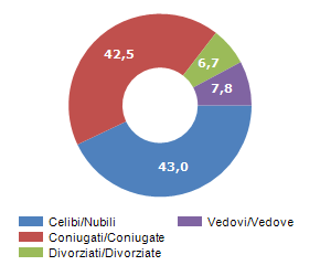 Famiglie residenti e relativo trend, numero di componenti medi della famiglia e relativo trend, stato civile: celibi/nubili, coniugati/e, divorziati/e, vedovi/e nel