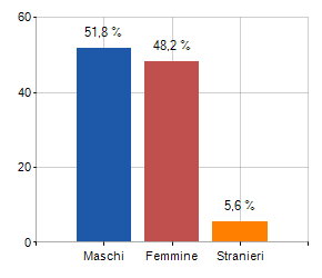 e relativa densità abitativa, abitanti per sesso e numero di famiglie residenti, età media e incidenza degli stranieri