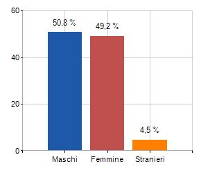 e relativa densità abitativa, abitanti per sesso e numero di famiglie residenti, età media e incidenza degli stranieri