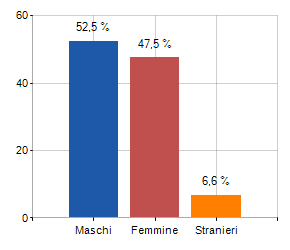 e relativa densità abitativa, abitanti per sesso e numero di famiglie residenti, età media e incidenza degli stranieri
