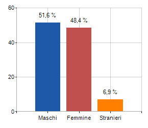 Incidenza maschi, femmine e stranieri (anno 2022)