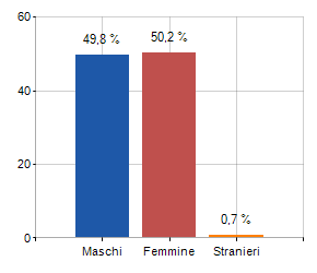 e relativa densità abitativa, abitanti per sesso e numero di famiglie residenti, età media e incidenza degli stranieri