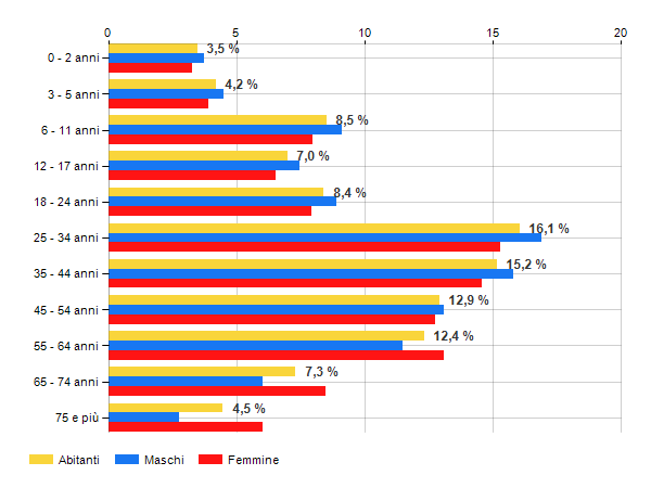 Classi di età per sesso e relativa incidenza, età media e indice di vecchiaia nel