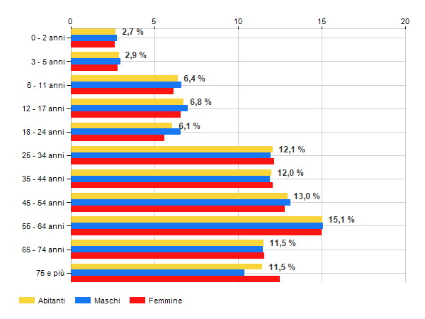 è al 258° posto su 374 comuni per % di residenti con meno di 15 anni