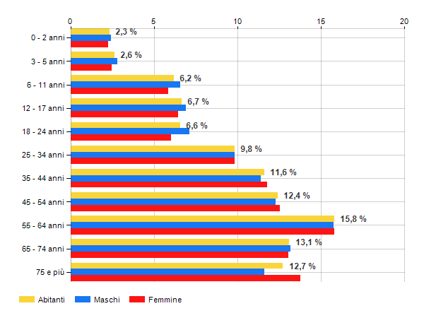 è al 309° posto su 374 comuni per % di residenti con meno di 15 anni