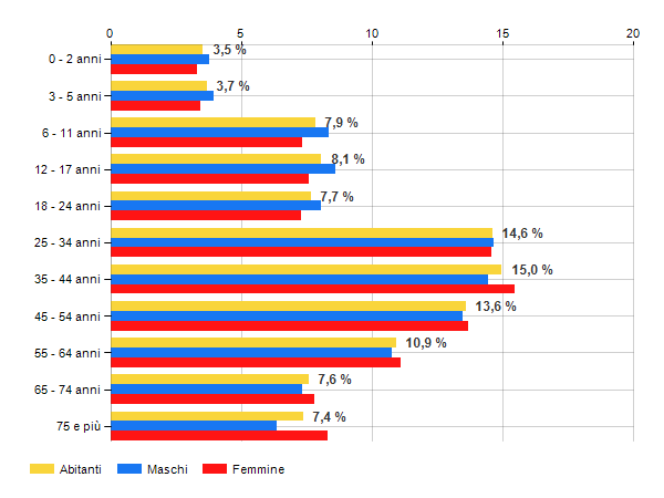 è al 41° posto su 374 comuni per % di residenti con meno di 15 anni