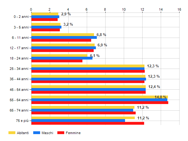 è al 187° posto su 374 comuni per % di residenti con meno di 15 anni
