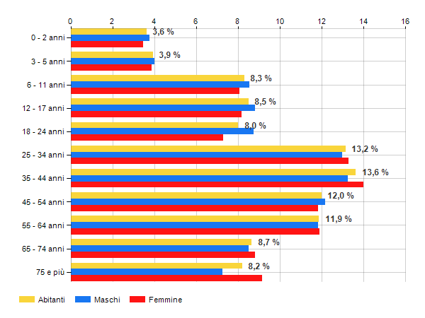 è al 17° posto su 374 comuni per % di residenti con meno di 15 anni