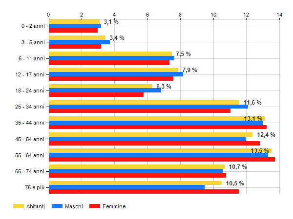 è al 99° posto su 374 comuni per % di residenti con meno di 15 anni