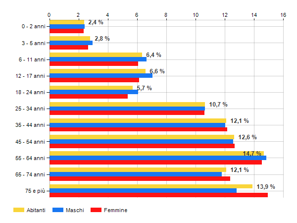 è al 45° posto su 374 comuni per % di residenti con più di 64 anni