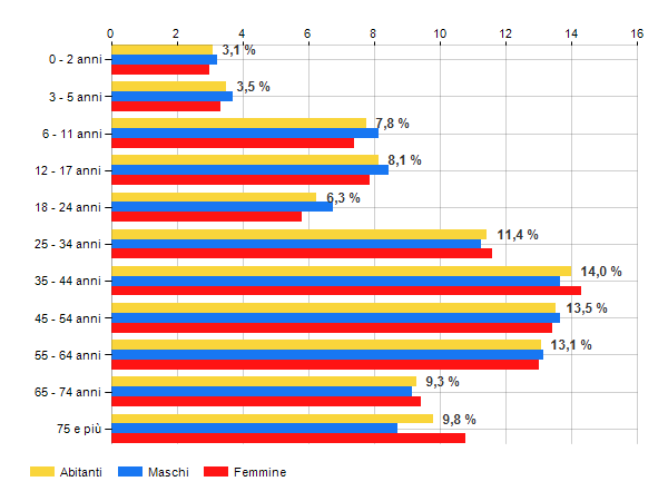 è al 222° posto su 374 comuni per % di residenti con più di 64 anni