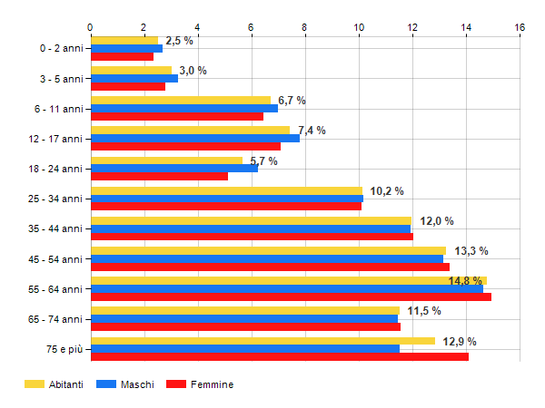 è al 221° posto su 374 comuni per % di residenti con meno di 15 anni