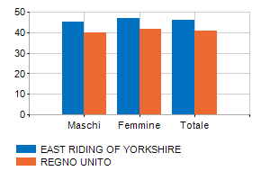 Classi di età per sesso e relativa incidenza, età media e indice di vecchiaia nel Comune di EAST RIDING OF YORKSHIRE