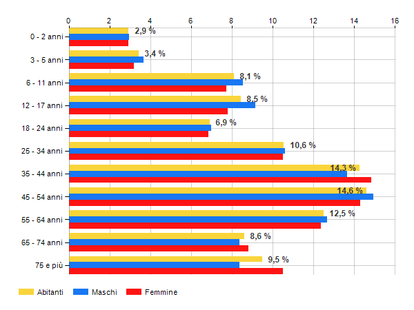 è al 55° posto su 374 comuni per % di residenti con meno di 15 anni