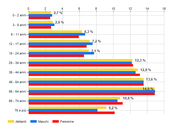 è al 257° posto su 374 comuni per % di residenti con meno di 15 anni