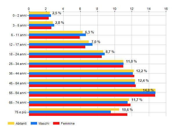 è al 120° posto su 374 comuni per % di residenti con più di 64 anni