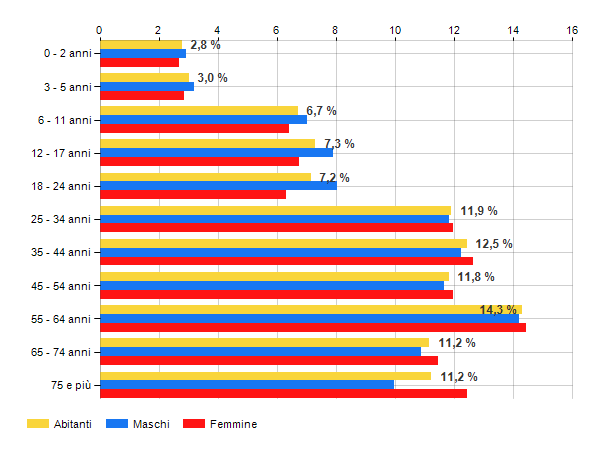 è al 210° posto su 374 comuni per % di residenti con meno di 15 anni