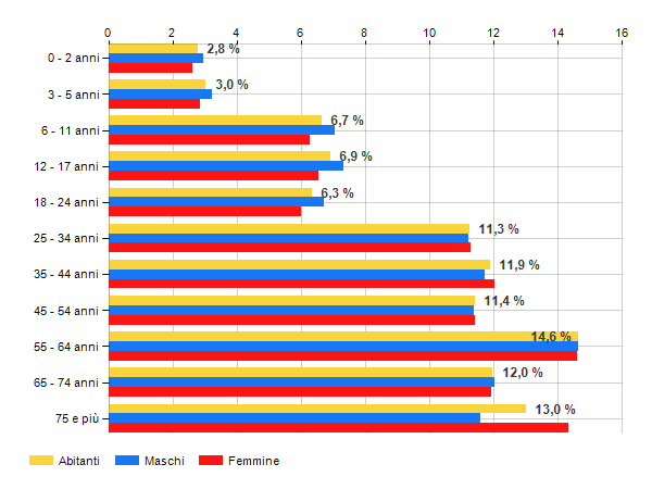 è al 222° posto su 374 comuni per % di residenti con meno di 15 anni