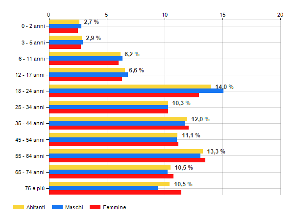 è al 280° posto su 374 comuni per % di residenti con meno di 15 anni