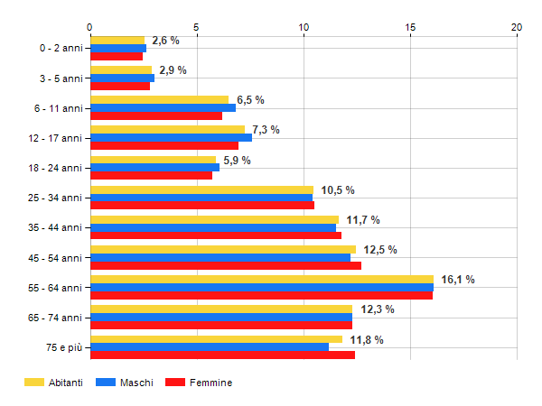 è al 238° posto su 374 comuni per % di residenti con meno di 15 anni