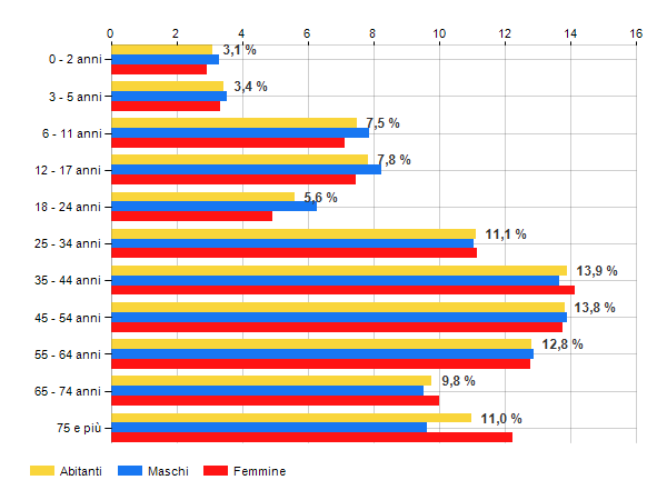 è al 93° posto su 374 comuni per % di residenti con meno di 15 anni