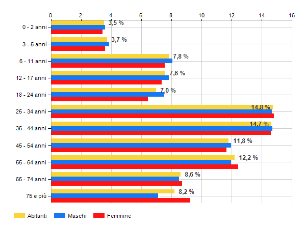 è al 46° posto su 374 comuni per % di residenti con meno di 15 anni