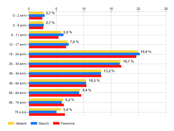 è al 310° posto su 374 comuni per % di residenti con meno di 15 anni