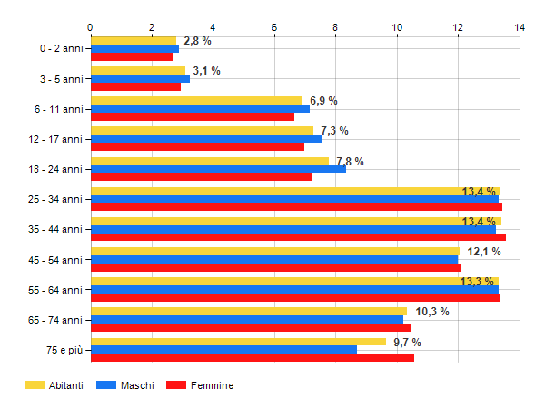 • è al 188° posto su 374 comuni per % di residenti con meno di 15 anni