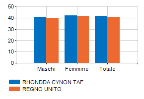 Classi di età per sesso e relativa incidenza, età media e indice di vecchiaia nel Comune di RHONDDA CYNON TAF