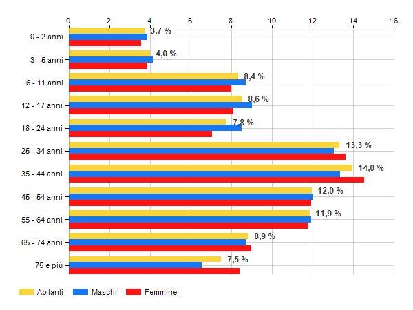 è al 14° posto su 374 comuni per % di residenti con meno di 15 anni