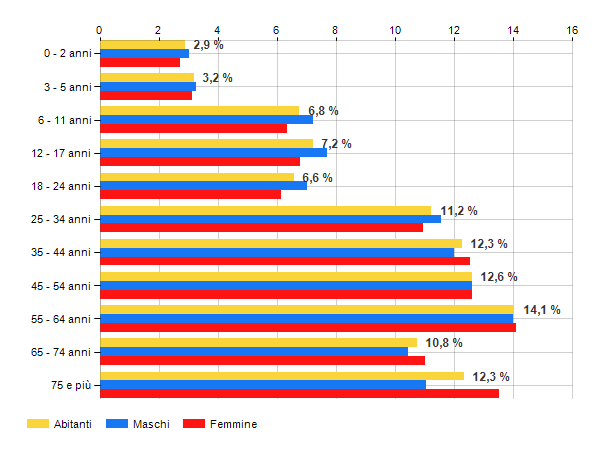 è al 184° posto su 374 comuni per % di residenti con meno di 15 anni