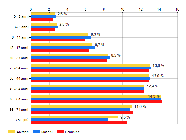 Classi di età per sesso e relativa incidenza, età media e indice di vecchiaia nella