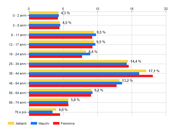 è al 2° posto su 374 comuni per % di residenti con meno di 15 anni
