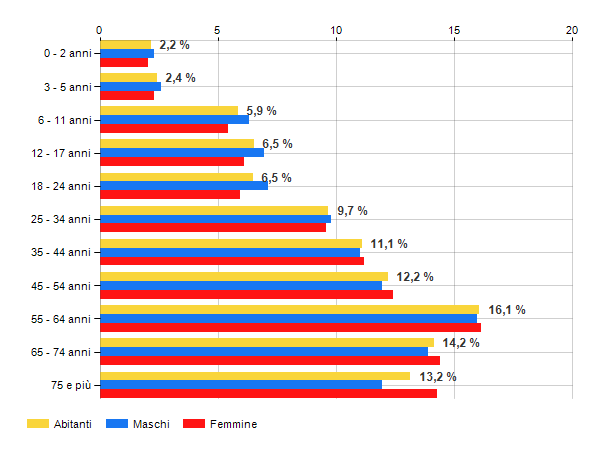è al 336° posto su 374 comuni per % di residenti con meno di 15 anni