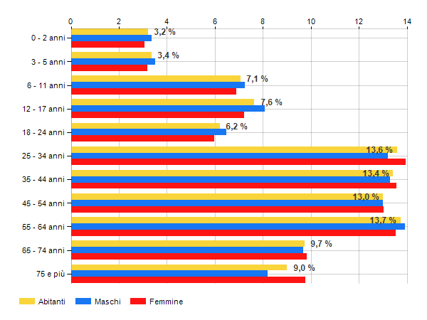 Classi di età per sesso e relativa incidenza, età media e indice di vecchiaia nel