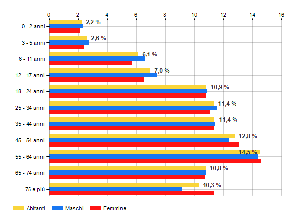 è al 153° posto su 374 comuni per % di residenti con più di 64 anni