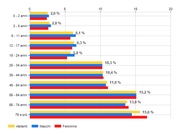 è al 296° posto su 374 comuni per % di residenti con meno di 15 anni
