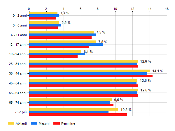 è al 195° posto su 374 comuni per % di residenti con più di 64 anni