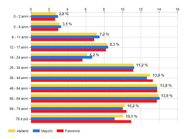 è al 178° posto su 374 comuni per % di residenti con più di 64 anni