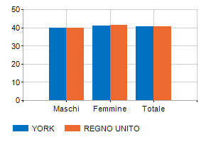 Classi di età per sesso e relativa incidenza, età media e indice di vecchiaia nel Comune di YORK