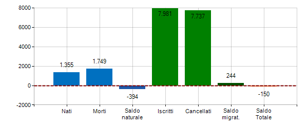 3. ^ Saldo Totale = Saldo Naturale + Saldo Migratorio