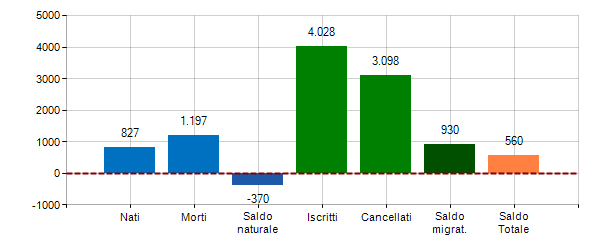 3. ^ Saldo Totale = Saldo Naturale + Saldo Migratorio