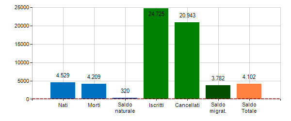 3. ^ Saldo Totale = Saldo Naturale + Saldo Migratorio
