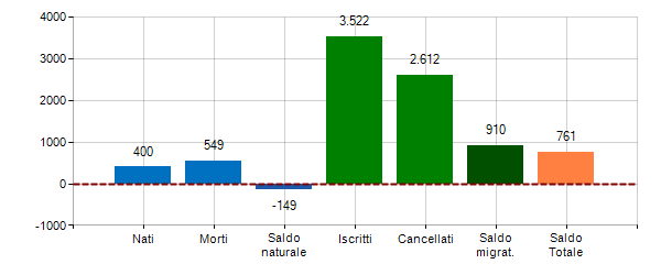 3. ^ Saldo Totale = Saldo Naturale + Saldo Migratorio