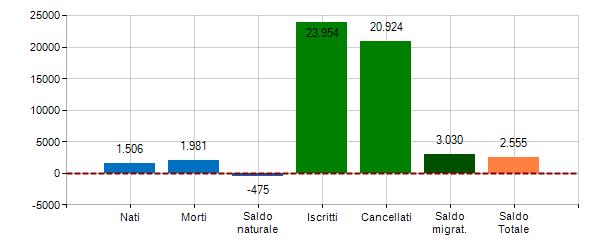2. ^ Saldo Migratorio = Iscritti - Cancellati