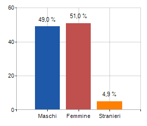e relativa densità abitativa, abitanti per sesso e numero di famiglie residenti, età media e incidenza degli stranieri