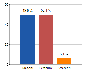 e relativa densità abitativa, abitanti per sesso e numero di famiglie residenti, età media e incidenza degli stranieri