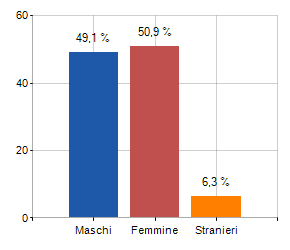 e relativa densità abitativa, abitanti per sesso e numero di famiglie residenti, età media e incidenza degli stranieri