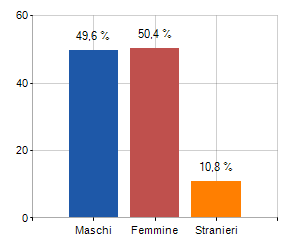 e relativa densità abitativa, abitanti per sesso e numero di famiglie residenti, età media e incidenza degli stranieri