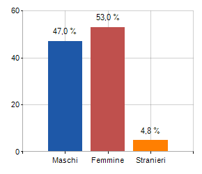 e relativa densità abitativa, abitanti per sesso e numero di famiglie residenti, età media e incidenza degli stranieri